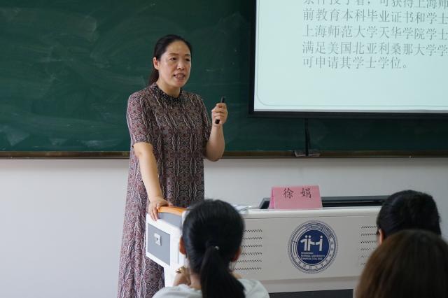 首先,张丽老师向新生表示了热烈的欢迎,向大家介绍了本专业,重点强调了中美学前教育的培养目标在培养专业基础扎实、英语应用能力强、具有国际教育理念和教育实践能力,“有理想信念、有道德情操、有扎实知识、有仁爱之心”的新时代好幼师。