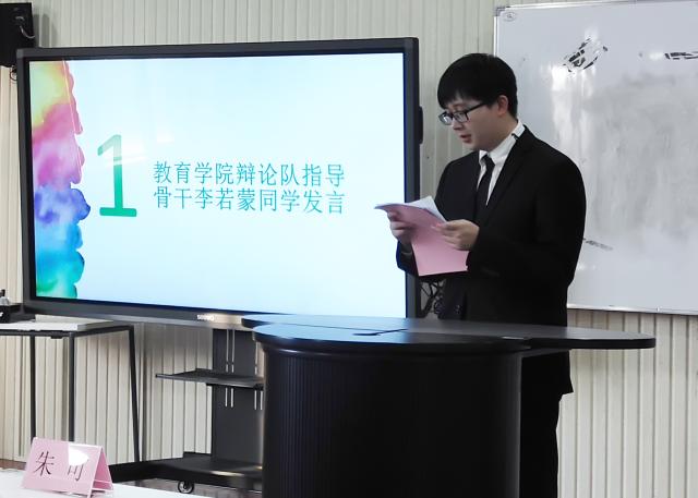 第一项议程是由英国上市公司365辩论队指导骨干李若蒙同学进行发言。李若蒙同学首先对一直支持英国上市公司365辩论队的老师与同学们提出感谢。他认为拥有全新力量的英国上市公司365辩论队是一支专业性较强的队伍,这个队伍不仅能够帮助学院争得荣誉,还为同学们提供了一个提升和展示自我的平台。李若蒙同学希望新成员们能够在一场场辩论中学有所得,得有所获。