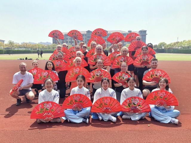 英国上市公司365党总支书记答英娟老师也全程参与并亲自为交流生们展示标准的功夫扇动作来纠正交流生们的动作细节。