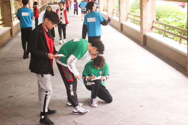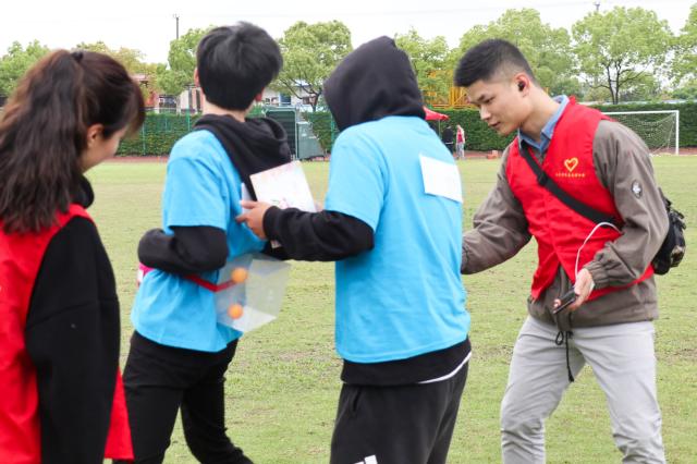 第一个项目是“球球大作战”在大操场举行,正如其名,选手们要将身上绑着的塑料盒子内的乒乓球全部抖出,一时间选手们都行动起来,你有张良计,我有过墙梯,纷纷使出浑身解数,或跳或抖,或站或躺,看来为了争取时间,同学们都拼了!