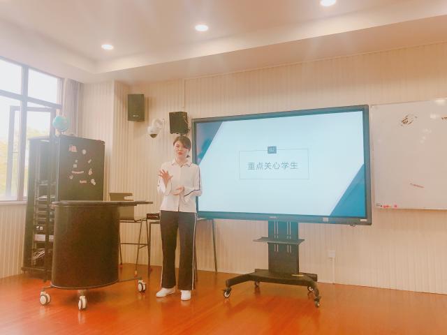 本学期狄怨怨老师以副代正,接手16艺教专业两个班级。狄老师表示,这两个班级的班风有很大差异,一动一静,因此在带班过程中要注意有针对性地开展相关工作。对于两位重点关心学生,狄老师积极与学生本人及学生家长沟通,家校紧密结合,取得了不错的效果。针对辩论训练,狄老师作为大三辅导员,紧抓班级辩论队,同时注意培养班级其他学生的思辨能力,助学生成长。作为大一学生的副辅导员,狄老师往往能从不同角度出发,与辅导员相互配合,狠抓班级宿舍卫生以及违章电器处理并且积极指导学生的辩论训练。