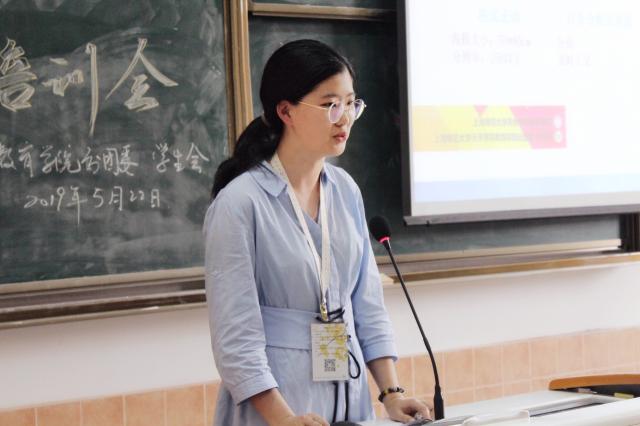 秘书部副部长刘美杉强调了秘书部的工作重点是公众号的推送。并且分享了自己从事拍照工作的经验。她强调,学生会是一个有纪律、有规矩的团体。在这里,同学们能得到一个认识自己、表现自己的平台。最后,她同样也向过去一年和自己并肩工作的老师和同学们致以感谢。