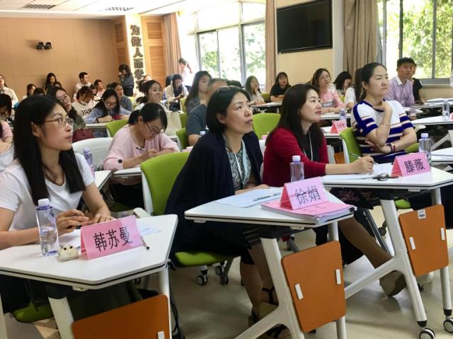 滕院长认为,在现今的小学英语课程教学中面临“语法深、词汇不够”的现象,故而适度的“超纲”可有利于学生的英语学习。教育技术的运用要涵盖全体学生、尊重儿童认知发展规律。教师应当从课前、课堂、课后对课程布局做好合理的安排。并在最后要求大家作为即将踏上工作岗位的准老师面对工作中传统教学思想要有勇于坚持自己在大学所学先进教育理念的勇气。
