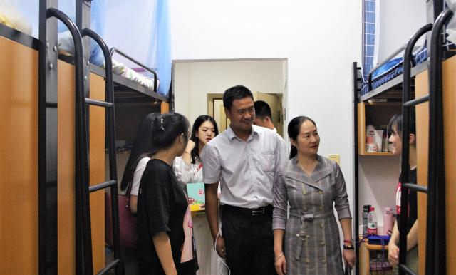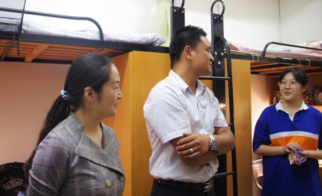 朱可老师仔细询问新生生源地是哪里,嘱咐新生多交流,多沟通。住在一个寝室要相互包容,建立良好的关系,大家共同创造和谐的生活环境!