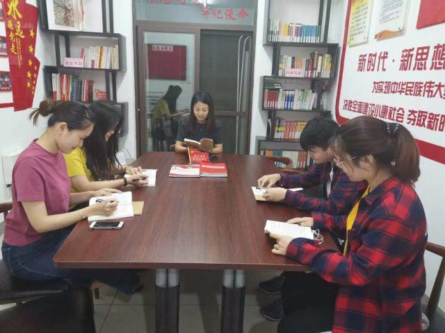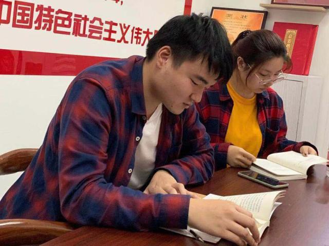 然后,贾孟云老师为支部党员、积极分子统一发放“不忘初心,牢记使命”主题教育学习笔记,做好学习记录。到会的每一位同学朗读《习近平新时代中国特色社会主义思想学习纲要》部分内容,围绕这本书进行了研讨,找自身差距,应该从哪些方面继续努力。