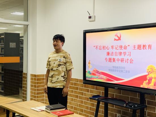 根据《中共中央关于在全党开展“不忘初心、牢记使命”主题教育的意见》和学校党委《关于开展“不忘初心、牢记使命”主题教育的实施方案》的有关要求,学前教育专业第二支部于2019年10月10日18:30在图书馆研讨室开展“不忘初心、牢记使命”主题教育和担当作为、政治纪律和政治规矩、党性修养专题、廉洁自律4个专题研讨会,学前教育专业第二支部党员积极分子参加会议。