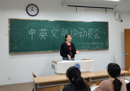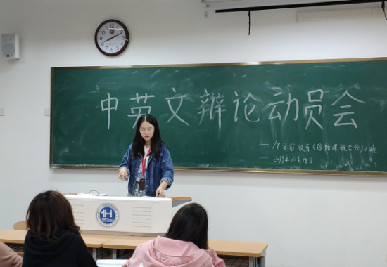 中英文辩论训练在长期的摸索实践中已成为我校的一项特色育人活动,该活动旨在锻炼我校学生的实践能力和思维品质,培养学生运用理论知识分析问题、解决问题的能力,从而使天华学子的逻辑思辨能力和口头表达能力得到大幅度提升。为了让大一新生了解中英文辩论训练的基本概况,激发他们的参训热情和兴趣,10月14日晚,19学前教育(国际课程合作)1班和2班特别召开中英文辩论训练动员大会。本次动员大会由辅导员杜华萌老师和颜银树老师主持。