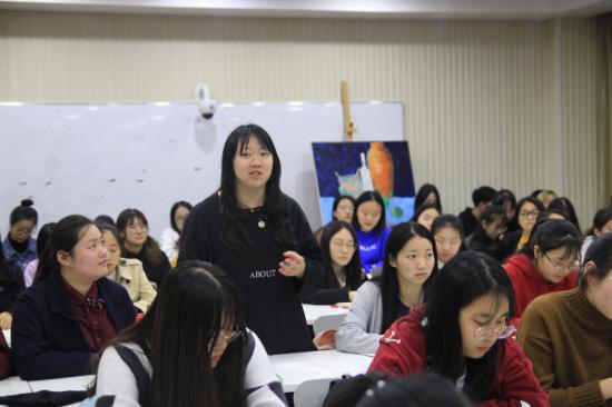 随后,陈诺同学结合自身丰富的经验,用幽默风趣的语言回答了同学们在辩论训练中存在的问题并且提出了相关的解决方案。