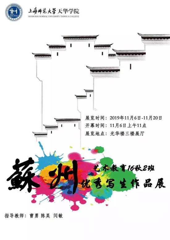2019年11月6日至11月20日,光华楼三楼展厅将展出近50幅2016级秋季艺术教育2班同学于2019年4月在苏州写生的优秀作品。