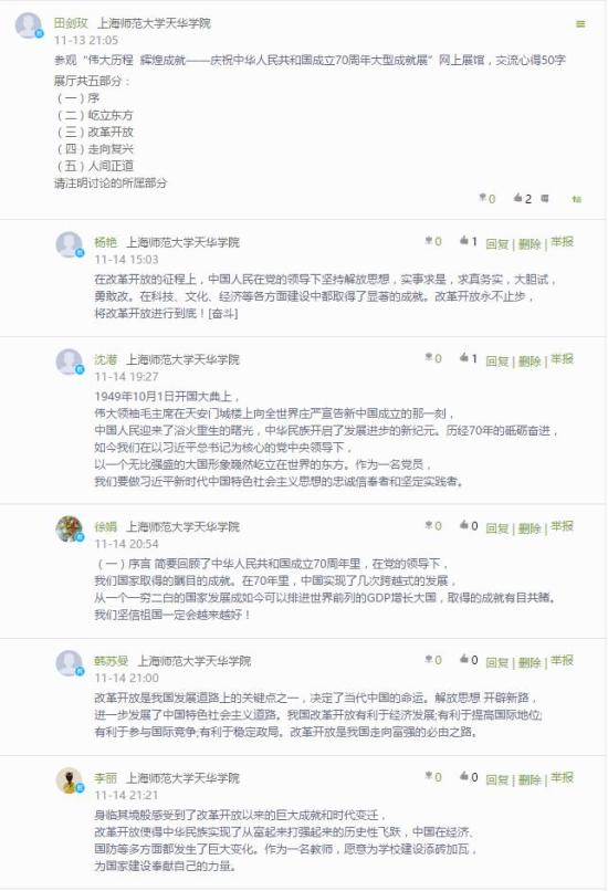 沈晓燕老师说:人间正道厅为我们打开了未来的蓝图,在“中国梦”的引领下,在中国共产党的正确领导下,我们要“不忘初心 牢记使命”,共同为打开新的篇章作出自己应有的贡献。全世界正面临着百年未有之大变局,如何在变化多端的浪潮中能坚定我们的发展目标,我想,这次的网上展馆参观给了我们最好的答案!