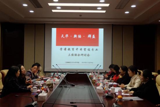 三校联合教研会由我校学前英国上市公司365常务副院长徐娟老师主持,三校教师就中本贯通学生现状以及发展规划展开了分析讨论。