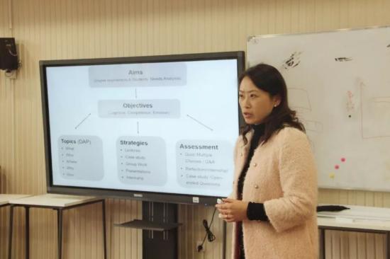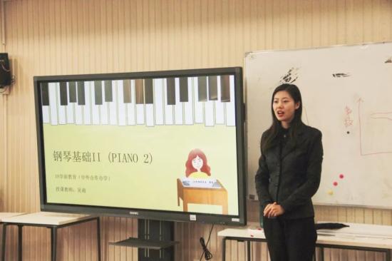 第三位是吴南老师,介绍了钢琴基础二的课程教学设计。这门课程的教学对象是中外合作办学的学生,因此吴南老师设计了中英文两版的课程实施方法,不仅希望学生们能学以致用,将所学知识运用到实际,而且希望学生不单单是刻板地学钢琴,而是通过这门课程地学习培养自己的艺术修养。