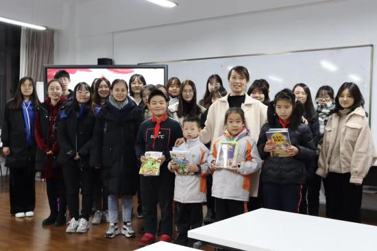 其次,进行了阅读送书仪式,颜银树老师将提前准备系列书籍赠送给了参与活动的小学生们。
