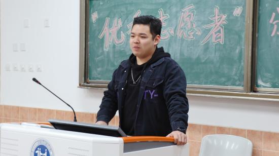 (外联委员朱祎对获得了优秀志愿者荣誉的志愿者们提出表扬)