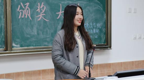 紧接着志愿者部副部长庞觉慧进行发言,他希望各位志愿者们来年继续努力,能够将缺点积极改正,并将志愿者部的良好作风与服务精神继续保持下去。