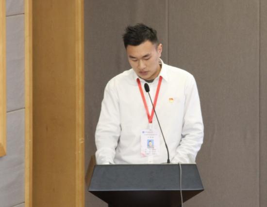 大会第四项议程,学前英国上市公司365第一届年度人物代表琚恩玮同学上台发言。