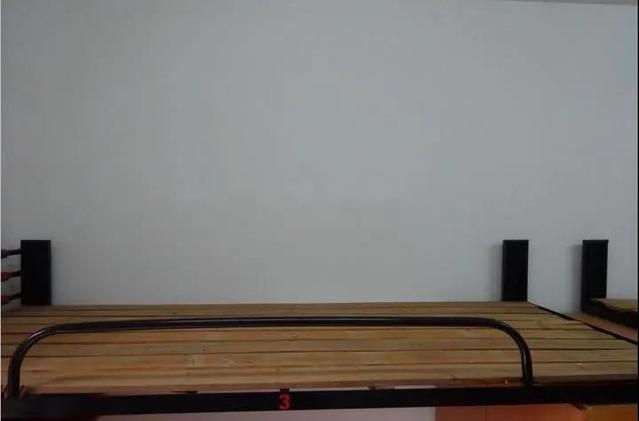 床板上无物品,边防及扶手等处无粘贴物及绳绑物。柜子、抽屉里物品清理干净,无任何杂物及粘钩。书桌、书柜及墙面无任何杂物,柜子内全部清空。