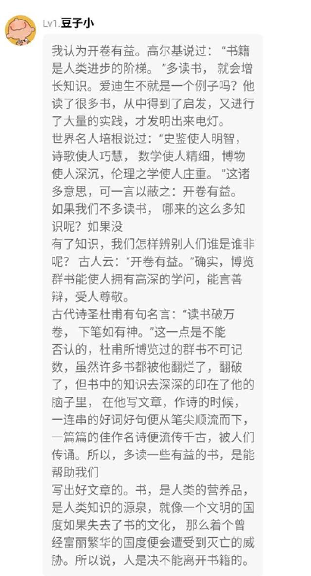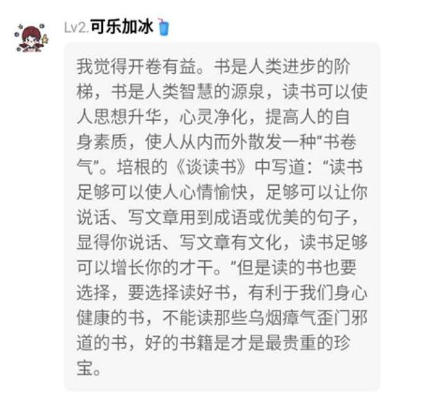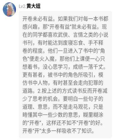 这位同学的观点为“开卷有益”,来看看她是怎么论证自己的观点吧: