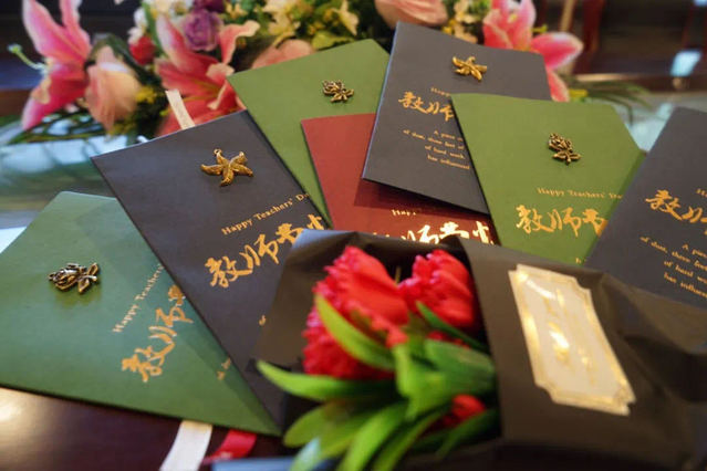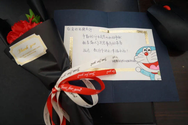在这墨水中,浸透着同学们满满的爱,同时散发着人间最无私美好的师生情谊。正如这红色康乃馨的花语:热情、真诚的爱。