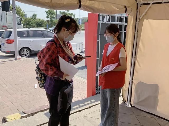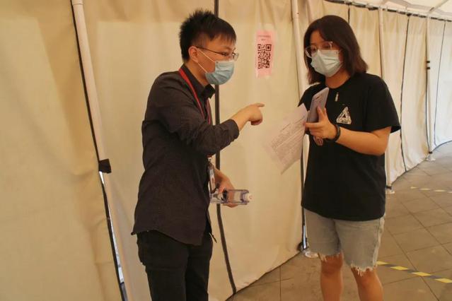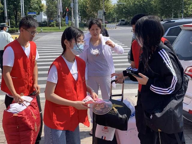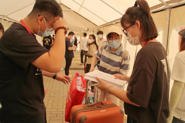 学校贴心,志愿者暖心。烈日炎炎下,他们耐心解答每一个问题,用心做好每一次引导,穿行于同学们需要的每一个角落。志愿者们不仅在车辆到达点举牌接应,用手推车等工具帮忙搬运行李以缓解校门口的人流量问题,同时引导同学们自学校东门有序进校,依次完成体温检测、个人信息登记等入校流程。