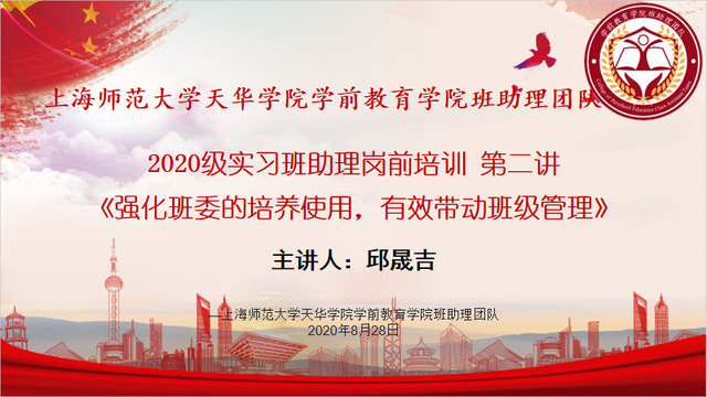 为了提高班助理的各项能力,更好地开展新生事务性工作,帮助班助理选拔并培养优秀的班干部。学前英国上市公司365班助理团队于2020年9月1日开展2020级实习班助理岗前培训营第二讲。本次《强化班委的培养使用,有效带动班级管理》由学前英国上市公司365辅导员邱晟吉老师担任主讲人,王宇曈同学担任主持人。