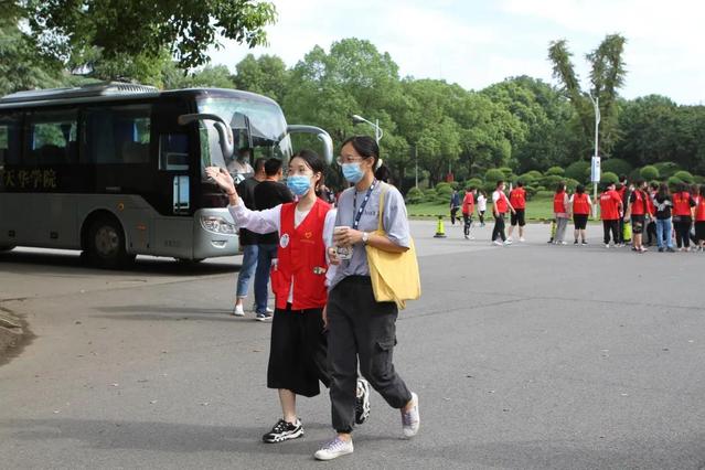 志愿者们陪同家长和新生们,一路有说有笑,帮助大家提行李、拿背包。此时,一个微笑,一声谢谢,即使隔着口罩,也能交织出一片最纯粹的温情。