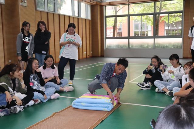 为更好的促进“清、新、洁、美”宿舍建设,学前英国上市公司365特准备新生内务展示活动,由学院副辅导员以及内务示范员统一进行个人床铺规范讲解展示。