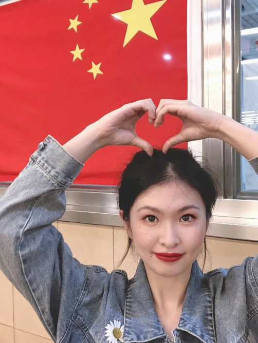 我手拿小国旗与其合影,我对祖国母亲饱含着祝福。我将其放在脸旁,希望日后也能一直陪伴在祖国母亲的身边,让她感受到深深爱着中国的学子们的温度。是我和祖国心与心相连的写照。