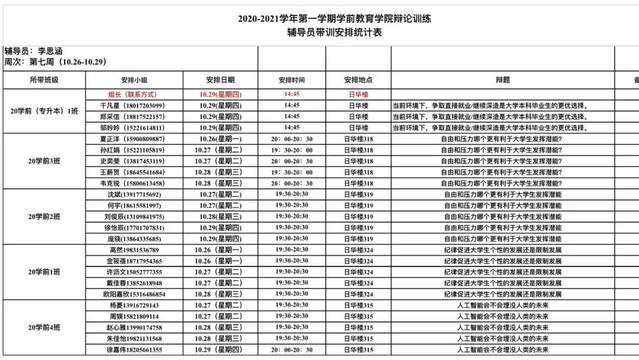 各带训辅导员在班级辩论训练开展前已做出小组辩论训练周计划,以此对所带小组有规划地进行训练。督察组于上周收集整理了辅导员的本周安排表,以此确定督导的时间与人员安排,并于晚自习时间进班对部分班级展开了督导工作。