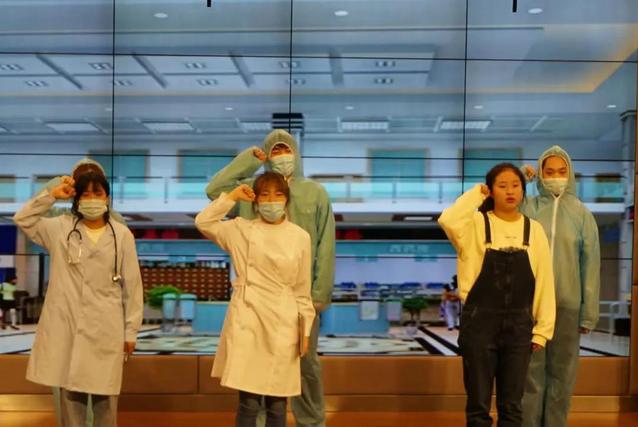20艺术教育1班带来的《留下》改编自《在一起之我叫大连》,讲述了一名新冠肺炎疫情重症患者区工作者,由于对于死亡的恐惧而选择逃离,却被警察的家人事迹所感动而重回医院,继续奋战在一线的故事。