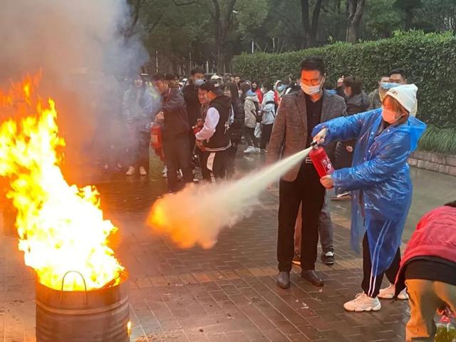 讲解完毕后,部员们跃跃欲试,在老师的引导下部员们开始轮流开始实操,最终将大火扑灭。